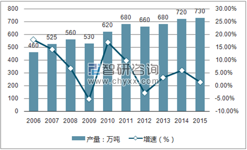 2006 年-2015 年,我國緊固件行業產量情況
